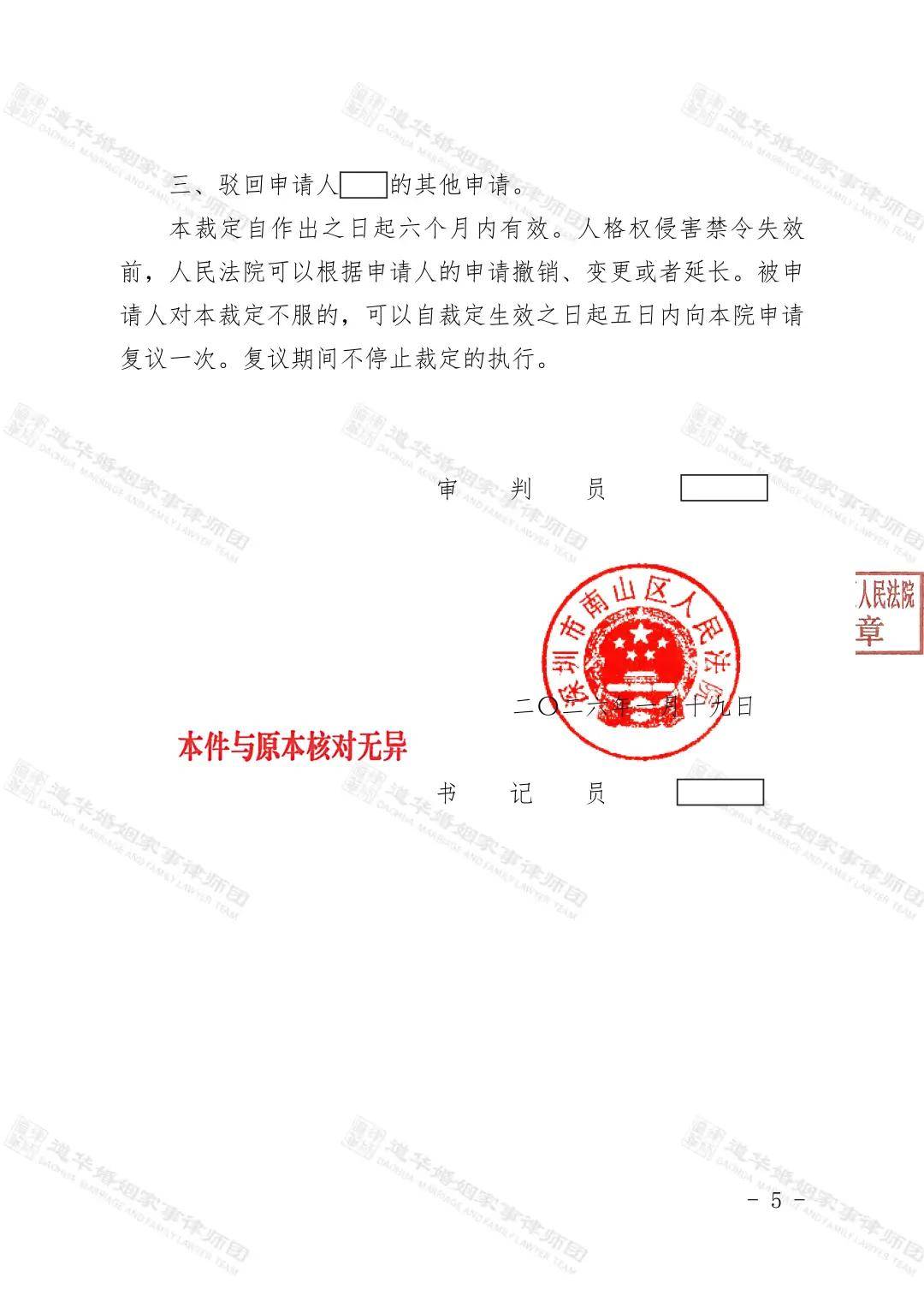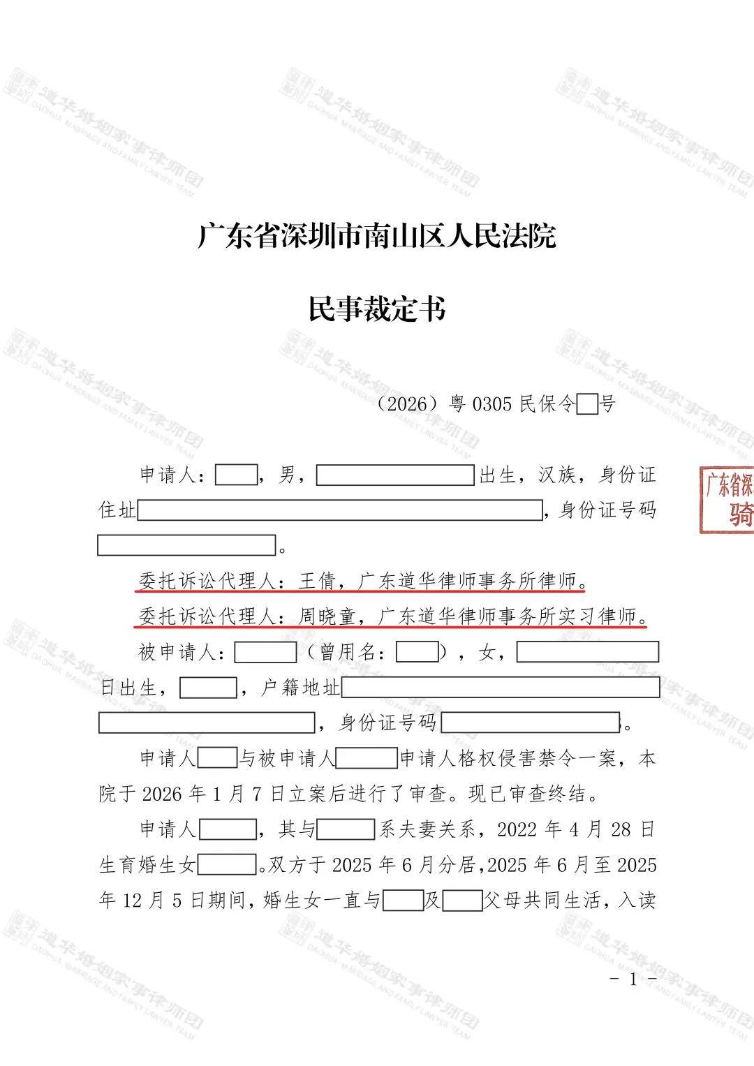 (四)强力推进强制执行:人格权侵害禁令生效后,梁女士拒不履行裁定义务,道华律师团队第一时间向法院提交强制执行申请,积极配合法院执行工作,与执行法官、梁女士多方沟通释法,明确拒不执行的法律后果,最终促使梁女士配合履行义务,将婚生女陈某某送回陈先生身边。